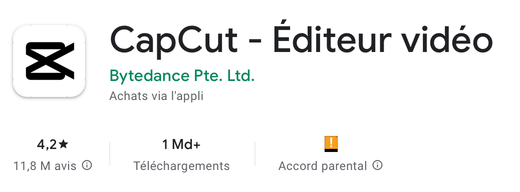 | CapCut | 0 € (gratuit) | ❌ Aucun bonus spécifique | ❌ Aucun | ⭐⭐⭐⭐ (4,2/5 – 11,8 M avis Google Play) | ✅ Oui (bonne précision) | ❌ Non (traduction manuelle uniquement) | ✅ Basique |