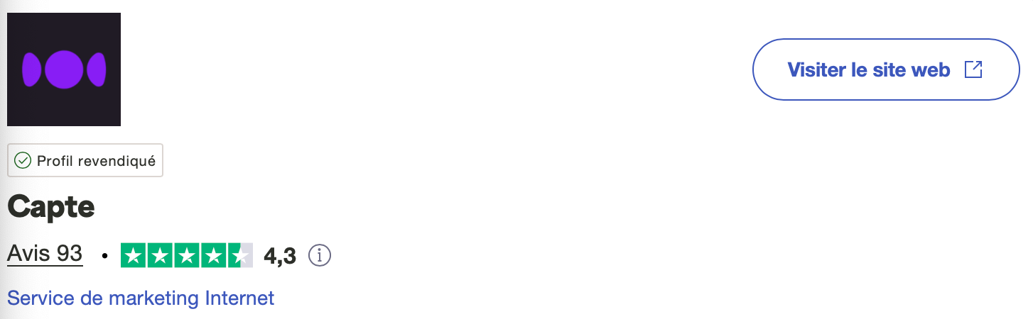 | Capte | 7 €/mois | ✅ 3 jours d’essai gratuit | 10 % | ⭐⭐⭐⭐☆ (4,3/5 – ~100 avis Trustpilot) | ✅ Oui (très rapide) | ✅ 10 langues | ✅ Automatique et manuelle |