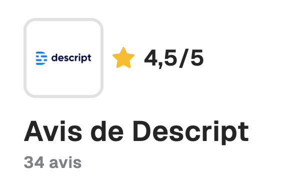 | Descript | 24 €/mois | ❌ Pas d’essai gratuit complet (1h gratuite) | 35 % | ⭐⭐⭐⭐⭐ (4,5/5 – 34 avis JoinSecret) | ✅ Oui (précision >90 %) | ✅ 20+ langues | ✅ Avancée avec surlignage |
