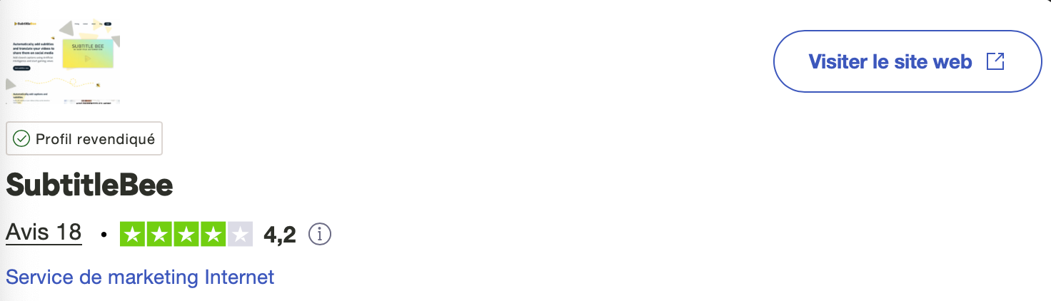 Sur Captera, un site d’avis populaire, nous retrouvons 20 avis sur SubtitleBee pour une note moyenne de 4,2 sur 5 :