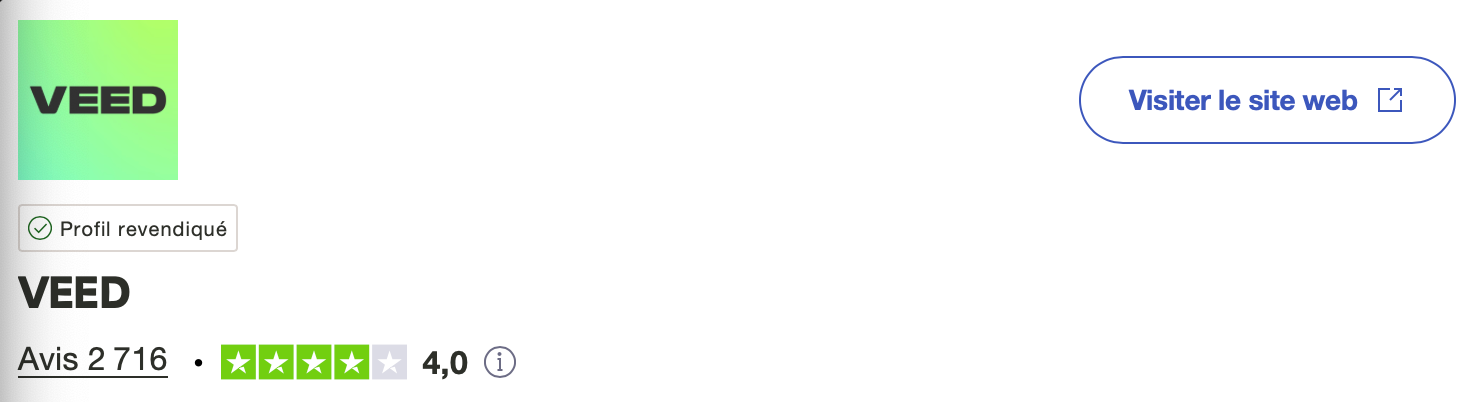 | Veed.io | 24 €/mois | ❌ Pas de bonus | 50 % (Lite) / 47 % (Pro) | ⭐⭐⭐⭐ (4,0/5 – 2 700 avis Trustpilot) | ✅ Oui (précision >95 %) | ✅ 100+ langues | ✅ Très bonne |